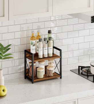 • Giikin 2 Tier Kitchen Spice Rack Organizer for Countertop, Wood Coffee Counter Shelf Organizer for Home (Rustic Brown)