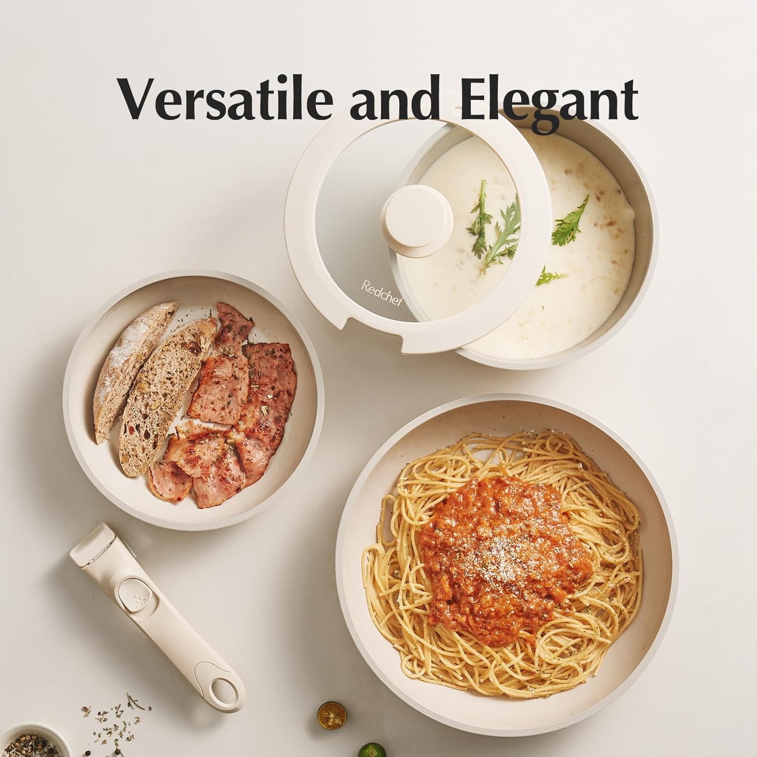 Introducing the Redchef Ceramic Pots and Pans Set, the ultimate solution for all your cooking needs! This 5-piece cookware set is designed to revolutionize your kitchen experience with its innovative features and superior quality.